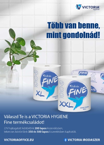 Több van benne, mint gondolnád! Válaszd Te is a VICTORIA HYGIENE Fine termékcsaládot! Z/V hajtogatott kéztörlőnk 200 lapos kiszerelésben, tekercses kéztörlőink 350 és 500 lapos kiszerelésben kaphatók. VICTORIAOFFICE.EU VICTORIA IRODASZER