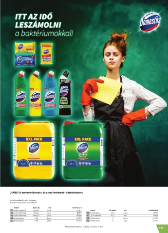 DOMESTOS nedves törlőkendők, általános fertőtlenítő- és fehérítőszerek