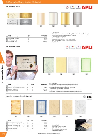 Metálfényű papírok • Előnyomott papírok • Oklevélpapírok