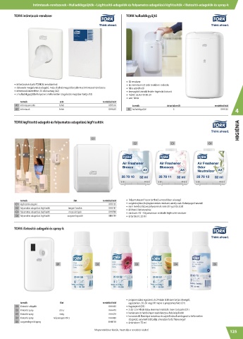 Intimtasak-rendszerek • Hulladékgyűjtők • Légfrissítő-adagolók és folyamatos adagolású légfrissítők • Illatosít ó -adagolók és spr a y -k