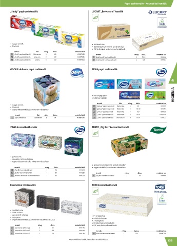 A3 „Sindy” papír zsebkendő kamilla 3 100 KHHVP006 B2 „EcoNatural” kozmetikai kendő 2 100 KHH661