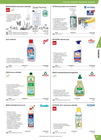 A2 „Sensitive” vízkőoldó citromsavval, allergénmentes 5 KHT1463 B ecetes tisztítószer 1 VHUET1L