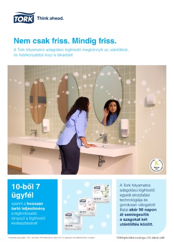 A Tork folyamatos adagolású légfrissítő megkönnyíti az utántöltést,