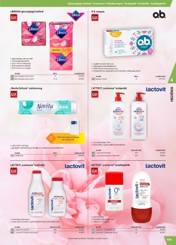 Egészségügyi betétek • Tamponok • Vattakorongok • Testápolók • Tusfürdők • Izzadásgátlók