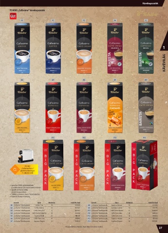 A5 „Cafissimo” kávékapszula Espresso Brasil 10 KHK661 A12 „Cafissimo” kávékapszula Caffé Crema Rich 30 KHK654