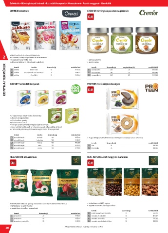 KONYHAI TERMÉKEK ABONETT extrudált kenyerek 55 KHE341 PROTEEN rizsfehérjés édességek 20 KHK1042