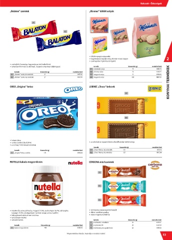 A1 „Balaton” szelet, étcsokoládé 27 KHE193 B3 mogyorós ostya 75 KHK699