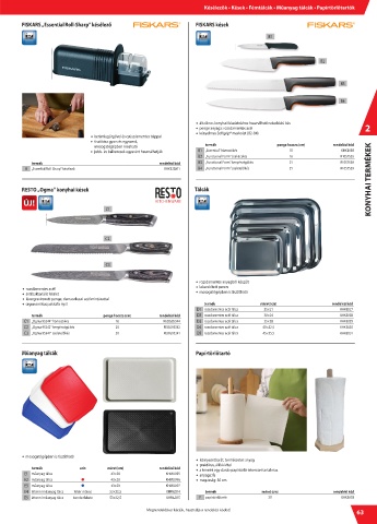 Késélezők • Kések • Fémtálcák • Műanyag tálc ák • P apír t ör lőtar t ók